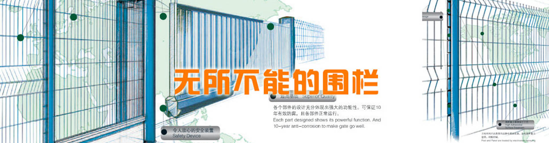 河北思固爾圍欄設(shè)施有限公司致力于專業(yè)的場地防護產(chǎn)品的研發(fā)與生產(chǎn),為全球客戶提供優(yōu)質(zhì)先進的金屬圍欄、全鋼結(jié)構(gòu)大門和其他防護產(chǎn)品及服務。思固爾圍欄以一種目前市場上成熟的設(shè)計理念將立柱與焊網(wǎng)結(jié)合在一起,可以應廣大客戶的要求提供理想的解決方案。公司于2002年通過ISO9001質(zhì)量管理體系認證;2004年被評為項目建設(shè)先進單位,信用優(yōu)良企業(yè),科技進步先進單位;2006年底公司取得了自營出口權(quán);2006年5月10日思固爾圍欄獲得中華人民共和國國家知識產(chǎn)權(quán)局頒發(fā)的實用新型專利證書目前,公司產(chǎn)品銷售網(wǎng)絡(luò)已遍及新疆、黑龍江、遼寧、江蘇、內(nèi)蒙古、海南、廣西、廣東、湖南、湖北、上海、福建、浙江、河南、北京等全國各地,并出口至加拿大、烏克蘭、伊朗、新西蘭、泰國、俄羅斯、南非、印度、巴基斯坦、韓國等30多個國家和地區(qū)。今天的思固爾已發(fā)展成集研發(fā)、設(shè)計、制造、貿(mào)易為一體的綜合性實體公司。思固爾人一如既往地秉承之前的創(chuàng)業(yè)精神,引進與運用現(xiàn)代的管理模式,迎合未來的市場需求,竭力滿足不同客戶的需求,力爭早日把思固爾打造成中國的民族品牌!-----------------------------------------...